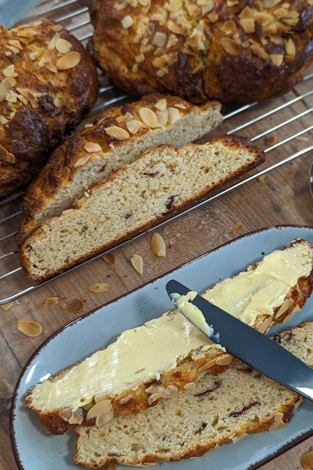 Osterbrot mit Quark und getrockneten Erdbeeren