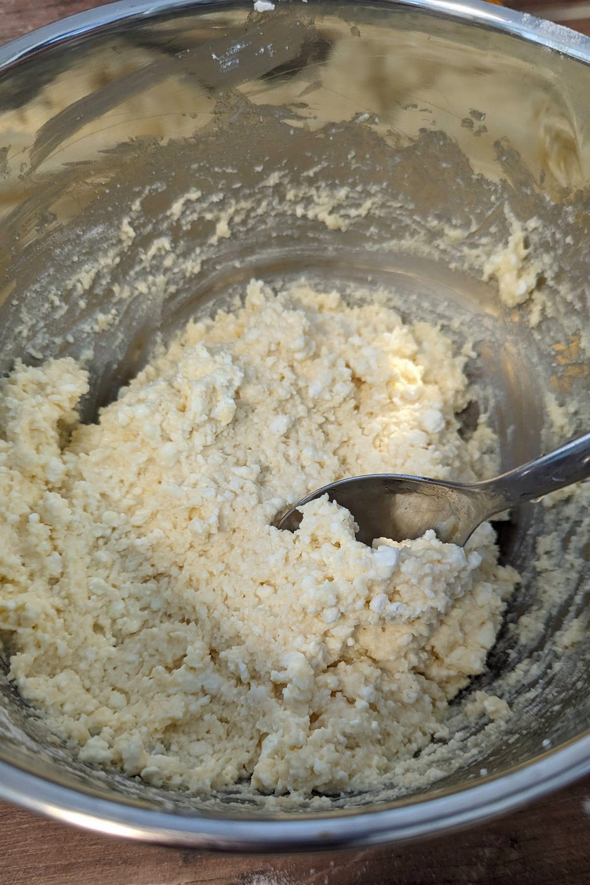 - Den Quark mit einem Löffel ein wenig zerdrücken. Eier mit Quark gut miteinander verrühren.